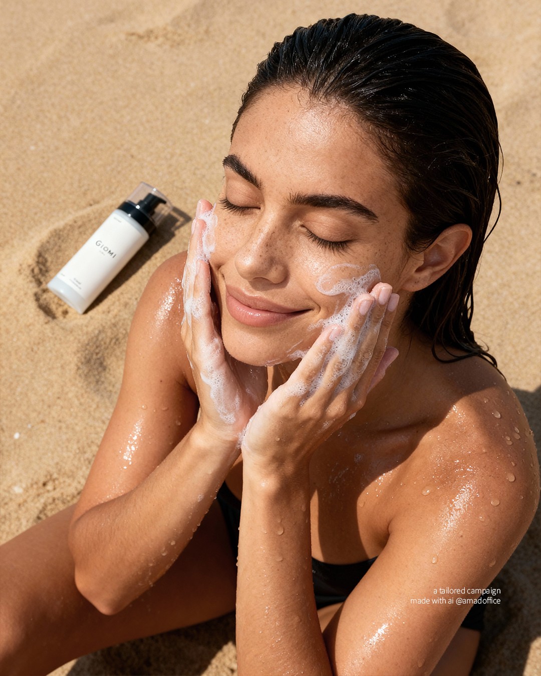 These included product shots captured in sandy beach settings and AI-generated model imagery that brought a warm, editorial touch to the collection. The campaign became a proof of concept for how brands can now create entire worlds.